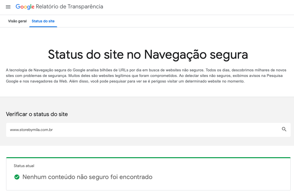 No rodapé do nosso site você encontra o selo do Google Safe Browsing. Clicando neste selo você será redirecionada à pagina do Google e pode conferir o status de segurança do nosso site.
