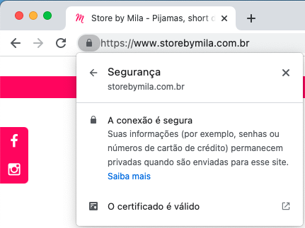 Na Store by Mila os seus dados só serão transmitidos por meio de conexão segura identificada ela sigla “https” antes do endereço do nosso site. Sites que lidam com login, senha, informações de pagamento e outras informações pessoais devem ter, obrigatoriamente, conexão segura com o protocolo HTTPS.