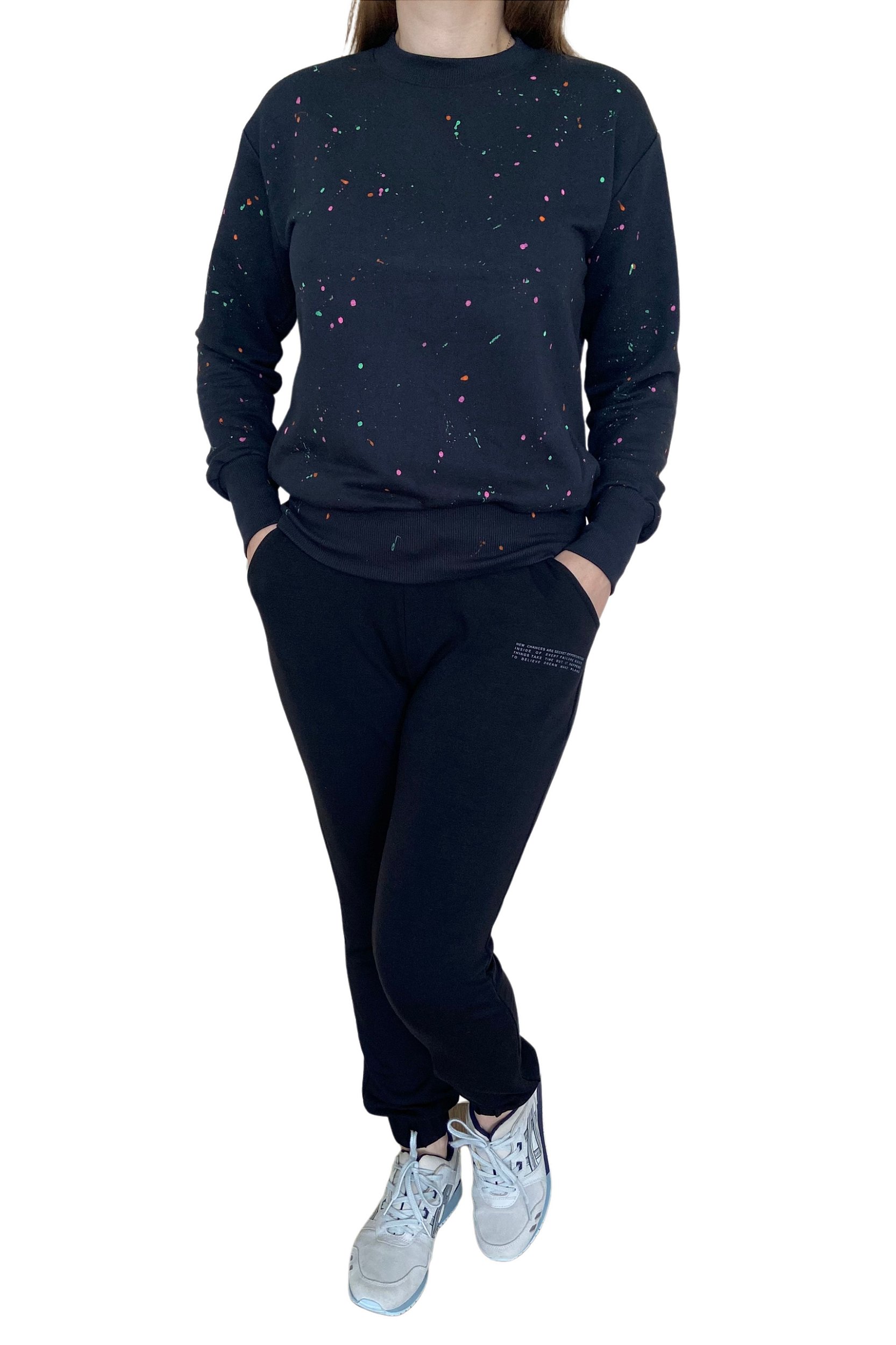 Um conjunto de moletom nada básico. Blusa com estampa colorida discreta, porém, super moderna e que traz uma alegria para peça, com ribana na cintura e ribana mais larga no punho. Calça modelo jogger, mais larga na cintura e com elástico no tornozelo para ficar ajustadinha. Modelo indispensável para esse inverno.